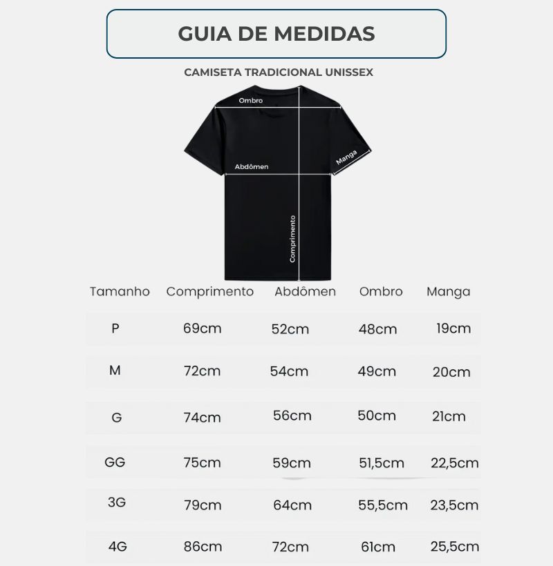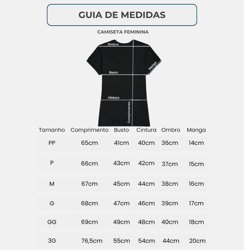 Para efetuar sua compra com segurança, é importante que você confira as medidas relativas ao tamanho que pretende comprar. Mesmo nós disponibilizando uma troca sem custos em até 30 dias após a compra, uma medida errada pode gerar transtorno de tempo para você.